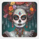 Adesivo Quadrado Dia dos Mortos Da Garota Do Crânio Do Açúcar