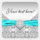 Adesivos azul turquesa e prata com fita de diamante azul turquesa bonita em um fundo de renda prateado lindo. Você pode escolher a forma do adesivo e adicionar o texto de sua escolha no estilo de fonte e cor de sua escolha. Este é um design impresso sem diamantes, laços, renda, etc. reais.