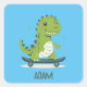 Adesivo Quadrado Dinossauro De Skate Divertido Com Nome De Criança