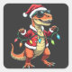 Adesivo Quadrado Dinossauro Envolvido com Luzes de Natal Santa Hat