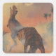Adesivo Quadrado Dinossauros Vintage, Carnotaurus Rugindo na Selva