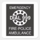 Adesivo Quadrado Discagem de Emergência 999 Sinal Ambulância da Pol