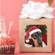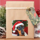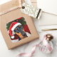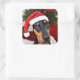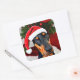 Doberman bonito vestindo um chapéu de Papai Noel.