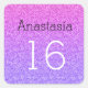 Um doce adesivo quadrado de 16 com brilho violeta púrpura brilha fundo e escrevendo preto e branco. Você pode personalizá-lo com seu nome e mudar o número para a idade do aniversário. Você pode até alterar a cor do texto e o estilo da fonte usando a opção personalizar.