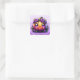 Uma adorável abóbora laranja kawaii chibi com flores roxas Adesivos Feliz Halloween. Adicione um toque fofo aos envelopes de cartões de Halloween ou sacolas de lembrancinhas de festa.