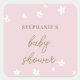 Um adesivo personalizado moderno, elegante, mas fofo, doce e na moda para uma festa de chá de fraldas de menina, para selos de envelopes ou bolsas ou caixas de presentes. O fundo rosa-pincelado-primavera é texturizado e em camadas com um padrão floral doce de margaridas brancas e amarelas. Parte do Bebê na suíte de chás de fraldas de garotas Bloom Daisies.