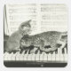 Adesivo Quadrado Dois gatinhos tocando no teclado de piano, (B&W)