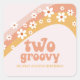 A Retro inspirou dois adesivos de 2º aniversário ranchosos com margaridas de 70 estilos e fontes e cores boho.