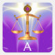 Elegante Justice Symbol (Símbolo de Justiça Elegante), artista.classy ouro escala com gemstones vermelhos roxos 3D, luzes vibrantes e ondas fractais em roxo, fúcsia, violeta, azul-aqua, azul-turquesa, azul-turquesa, cor verde, amarelo-branco por Búlgaro Lumini (c).