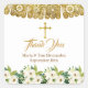 Adesivo Quadrado Dourado Baptism Fiesta Twin Obrigado Tag