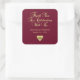 Adesivo Quadrado Dourado Borgonha Personalizado Obrigado Casamento