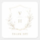 As iniciais monogramadas, emolduradas pela crista elegante e as folhas botânicas ilustradas à mão, em ouro e branco, simples e luxo. obrigado excelente você favorece adesivos para casamento clássico moderno, casamento formal simples, casamento botânico elegante. Veja todas as peças correspondentes na coleção.