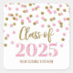 Classe de nome personalizado de adesivos de graduação 2025 com padrão de configuração dourado e cor-de-rosa com texto moderno com estilo escrito.