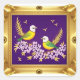Adesivo Quadrado Duas Pássaros no Quadro Dourado Ornamentado