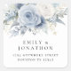 Dusty Blue Florals devolve o nome do casamento. Seus nomes estão curvos acima e seu endereço de retorno curvou abaixo de belos florais no meio. Todo o texto pode ser facilmente personalizado.