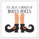 Um adesivo moderno de Halloween com arte de linha gráfica de sapatos de bruxa com fonte "é apenas um monte de abracadabra".
