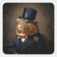 A imagem neste adesivo apresenta uma cobaia vestida com um traje tradicional Edwardian. A cobaia é enfeitada com um chapéu preto e uma casaco escura sob medida com uma lapela, acentuada por um boutonniere. Por baixo do casaco, parece vestir uma camisa complementada por uma gravata de arco de cor clara. A matéria é colocada contra um pano de fundo castanho texturizado que imita o estilo da fotografia de retrato clássico do início do 20, invocando o estilo de moda e retrato formal da era Edwardian.