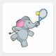 Adesivo Quadrado Elefante em Tênis com raquete Tênis
