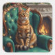 Adesivo Quadrado Elegant Abyssinian Cat Regal Holiday Portrait Art