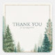 Bring the quiet beauty of a winter forest to your correspondence with this elegant and rustic sticker. The design features a clean, textured off-white background framed by a minimalist, thin, textured gold border. Rising from a snowy foreground, beautifully illustrated clusters of evergreen pine trees stand tall in rich shades of deep forest green and teal. Fainter, misty trees recede into the background, adding a subtle depth to this peaceful, painterly winter landscape. The overall aesthetic is clean, sophisticated, and inspired by the serene tranquility of a snow-covered woodland. These stickers are perfect for businesses with a natural, rustic, or seasonal aesthetic, such as artisans working with wood, outdoor apparel brands, rustic event venues or lodges, Christmas tree farms, or photographers specializing in winter scenes. This versatile design can also be used to beautifully seal envelopes for holiday greetings, winter weddings, or formal events, or as a sophisticated accent on party favors and gift wrapping.