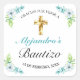 Adesivo Quadrado Elegante Azul Floral Oro Cruz Bautismo Gracias