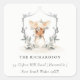 Adesivo Quadrado Elegante Cute Dusky Deer Floral Crest Endereço