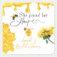 Doce e moderno adesivo quadrado tema Abelha Mel Amarela Elegante Ela Encontrou Seu Chuveiro de Noiva Abelha Mel com aquarela amarela, abelhas, favos de mel e flores de girassol. Produtos correspondentes você pode encontrar na coleção.