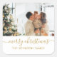 Elegante Script Dourado "Feliz Natal" Caligrafia Foto da Família Feliz Natal Feriado Adesivo Grande. Ótimo para Acessórios de Envio Selos de Envelope e Adesivos de Presentes.