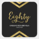 Este elegante adesivo de festa de aniversário quadrado 80 apresenta um guião geométrico moderno e a palavra "oitenta" em ouro falso contra fundo preto. É excelente para uma comemoração de 80. Confira os convites e itens correspondentes aqui http://www.zazzle.com/collections/modern_faux_gold_chevron_celebration_collection-119531050277382712?rf=238364477188679314 Personalize-o com seus detalhes substituindo o texto do marcador de posição. Para obter mais opções, clique no botão "Personalizar". *Observe que a Marca d'água do Zazzle que aparece na visualização de zoom NÃO aparecerá no produto impresso final. © Rosewood e Citrus