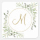 Adesivo Quadrado Elegante Monograma em Script Dourado com Folhagem