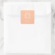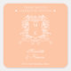 Adesivo Quadrado Elegante Peach Vintage Crest Monograma Obrigado