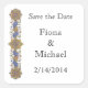 Uma fronteira formal em padrões geométricos ouros com folhas azuis e flores minúsculas, arte safra de um manuscrito antigo. Clique em Personalizar para alterar as fontes, as cores de fundo, alterar o texto e até salvar o design para mais tarde!