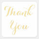 Personalizada, personalizada, elegante tipografia, branca e ouro amarela, obrigado de script que você usa adesivo quadrado. Um obrigado elegante que você veste por selar suas favoritos para festas para casamento, comemorações de aniversário, recepções, cerimônias, aniversário, chá de panela, chá de fraldas, feriados ou qualquer outra ocasião especial.