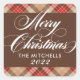 Adesivo Quadrado Elegante Tan Brown Tartan Xadrez Feliz Natal