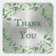 Adesivo Quadrado Elegante Verde Floral Agradecimento Aquarela Prata