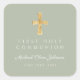 Adesivo Quadrado Personalizado Elegante Verde Sage Cruz Menino Primeira Comunhão