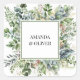 Adesivo Quadrado Elegante Watercolor Envelope de Casamento Verde