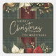 Adesivo Quadrado Elegante Xadrez Verde Poinsettias Feliz Natal