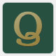 Dourada letra maiúscula Q em letra de bronze em ouro falso. Olhar metálico obtido com realces e sombras em tons amarelos, castanhos e cinzas. Este design simples, mas elegante, é colocado em verde escuro sólido e pode ser personalizado com a cor de fundo de sua escolha.