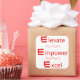 Adesivo Quadrado Elevate, Empower, Excel: Vinheta Motivacional