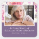 Este adesivo de simpatia floral lê "In Loving Memory" e pode ser personalizado com o nome e as datas do seu amado, assim como uma fotografia. **LEIA ANTES DE ENCOMENDAR** Se você fizer alterações na forma ou no tamanho ou escolher outro produto e o design for cortado de alguma forma ou não parecer direito na página, você precisará usar o Serviço de Design ao Vivo para que alguém ajuste o layout para você, a menos que você se sinta confortável fazendo isso sozinho. Não há nenhuma verificação manual ou intervenção entre a colocação do pedido e a impressão, portanto o que você vê na tela é o que será impresso e enviado a você. Com isso em mente, por favor, verifique também triplamente se há erros de ortografia ou informações incorretas antes de fazer seu pedido. A fotografia do modelo é para fins ilustrativos e pode ser mudada para uma de vocês.