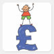 Um skectch de uma pessoa de pé no símbolo da libra. Esta design parece realmente eficaz neste adesivo
