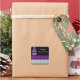 Um design divertido com uma pilha de pacotes bonito em um fundo com riscas de zebra roxa e cinza acentuando-as.