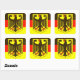 Casaco da Alemanha. A casaco de braços da Alemanha exibe uma águia negra (a "águia federal", antiga Reichsadler "Águia imperial") em um escudo amarelo (Ou, uma águia exibindo um calcanhar). Trata-se de uma reintrodução do casaco de armas da República do Weimar (utilizado em 1919-1935), adotado pela República Federal da Alemanha em 1950. A atual design oficial deve-se a Tobias Schwab (1887-1967) e foi introduzida em 1928.