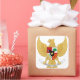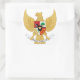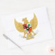 Emblema nacional da Indonésia. O emblema nacional da Indonésia chama-se Garuda Pancasila. A parte principal do emblema nacional indonésio é o Garuda com um escudo heráldico no peito e um pergaminho apertado pelas pernas. Os cinco emblemas do escudo representam Pancasila, os cinco princípios da ideologia nacional indonésia. As garras Garuda agarrando um rolagem branco de fita gravada com o lema nacional Bhinneka Tunggal Ika escrito em texto negro, que pode ser vagamente traduzido como "Unidade na Diversidade". Garuda Pancasila foi projetada pelo sultão Hamid II de Pontianak, supervisionado por Sukarno, e adotada como emblema nacional em 11 de fevereiro de 1950.
