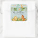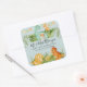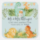 "Adesivo Quadrado de Endereço de Devolução do Chuveiro de Folhagem de Bebê Dinossauro Fofo." Endereço de devolução combinado com um selo de envelope decorativo para o seu Chuveiro de Bebê, Anúncios de Nascimento e notas de Agradecimento. Dinossauros fofos em aquarela celebrando o novo bebê em uma selva de folhagem verde. Arte de HeyIAmAlice, desenhada graficamente pela artista licenciada internacionalmente, Audrey Jeanne Roberts. Direitos autorais.