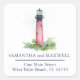 Adicione aplausos náuticos ao seu casamento, chá de panela ou correio diário de destino com meu adesivo de endereço de retorno de chic costeiro. Este adesivo quadrado apresenta a minha coloração d'água original, o farol Júpiter Flórida, em tons de vermelho. Personalize com os nomes do casal e devolva o endereço em azul marinho. Edite as palavras Salvar nossa data ou Obrigado e use como adesivos de favor. Para ver a papelaria de casamento de destino correspondente visite www.zazzle.com/dotellabelle