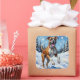 Adesivo Quadrado Energetic Boxer Dog Leaping in Winter Snow Fun