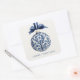 Este adesivo de férias personalizado apresenta um belo Enfeites de natal azul-marinho e chinoiserie branca numa fita azul correspondente. Personalize com sua escolha de mensagem especial de feriado.