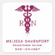 Etiquetas de enfermeira registradas personalizadas com suas informações. Concebido com um símbolo na moda vermelho caducus com as letras R N em ambos os lados. Design minimalista simples.